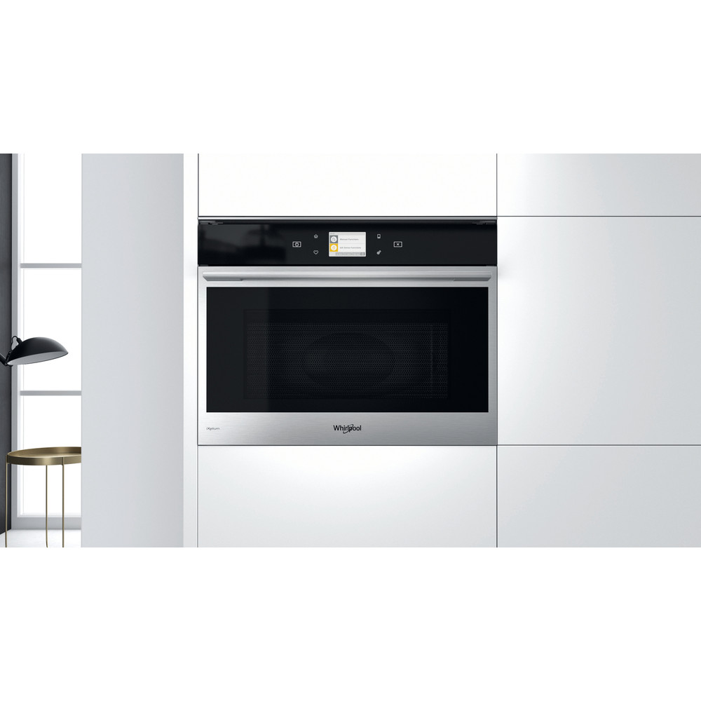 Whirlpool beépíthető mikrohullámú sütő jellemzői: rozsdamentes acél szín. Kimagasló belső méret. Hőlégbefúvás funkció. Exkluzív 6. Érzék technológia, amely automatikusan beállítja az időt, a hőmérsékletet és az energiafogyasztást a főzés során. Crisp funkció, verhetetlenül ropogós krumpli, pizzák és piték készítéséhez.