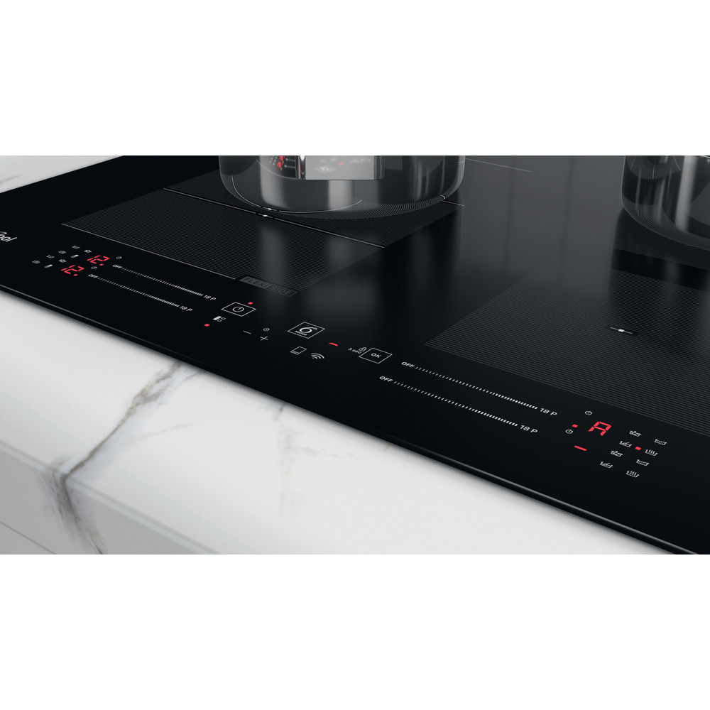 A FlexiCook zóna technológiája lehetővé teszi, hogy több égőt egy főzési zónává egyesítsen a nagyobb edényekhez és lábasokhoz. Intuitív csúszka, a készülék beállításainak könnyű vezérléséhez. Whirlpool indukciós üvegkerámia főzőlap 4 indukciós gyűrűvel. Egy elegáns technológia, amely nem a főzőlapot melegíti fel, hanem az edényt és tökéletes főzési eredményeket biztosít. Elektromos tápegység.