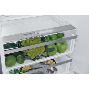 Whirlpool szabadonálló hűtő-fagyasztó jellemzők: inox szín. No frost, fagymentes technológia, amely hatékonyan megakadályozza a jég felhalmozódását a fagyasztóban a páratartalom csökkentésével. Egy magas készülék, amely megfelel a család igényeinek. Üveg polcok, amelyek biztosítják a robosztusságot és eleganciát egyszerre. 6.Érzék szenzorok, amelyek automatikusan csökkentik a készülék belsejében lévő hőmérsékletet, amikor új élelmiszert tárol benne, csökkentve az energiafogyasztást. Alulfagyasztós Total NoFrost hűtőszekrény, D energiaosztály, 239 L (hűtőtér) + 104 L (fagyasztótér) hasznos térfogat, fényes inox készülékszín, elektronikus hőmérséklet beállítás külső érintőszenzoros kijelzővel, 6. Érzék kontrol funkció (automatikus hőmérséklet szabályozás), Total NoFrost (jegesedésmentes) rendszer, Fresh Box 0 (friss húsok) és Fresh Box + (gyümölcs&zöldség) rekesz, 40 dB, 1900x600x650mm - 15 ÉV GARANCIA A KOMPRESSZORRA