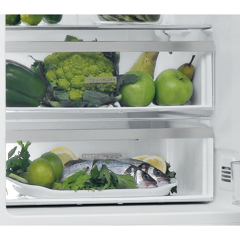 Whirlpool szabadonálló hűtő-fagyasztó jellemzők: inox szín. Optic Inox design ujjlenyomat elleni védelemmel. No frost, fagymentes technológia, amely hatékonyan megakadályozza a jég felhalmozódását a fagyasztóban a páratartalom csökkentésével. Egy magas készülék, amely megfelel a család igényeinek. Üveg polcok, amelyek biztosítják a robosztusságot és eleganciát egyszerre. Alulfagyasztós Total NoFrost hűtőszekrény, E energiaosztály, 267 L (hűtőtér) + 104 L (fagyasztótér) hasznos térfogat, optic inox készülékszín, elektronikus hőmérséklet beállítás külső kijelzővel, 6. Érzék kontrol funkció (automatikus hőmérséklet szabályozás), Total NoFrost (jegesedésmentes) rendszer, Fresh Box 0 (friss húsok) és Fresh Box + (gyümölcs&zöldség) rekesz, külső ajtónyitó fogantyúval, 40 dB, 2000x600x650mm - 15 ÉV GARANCIA A KOMPRESSZORRA