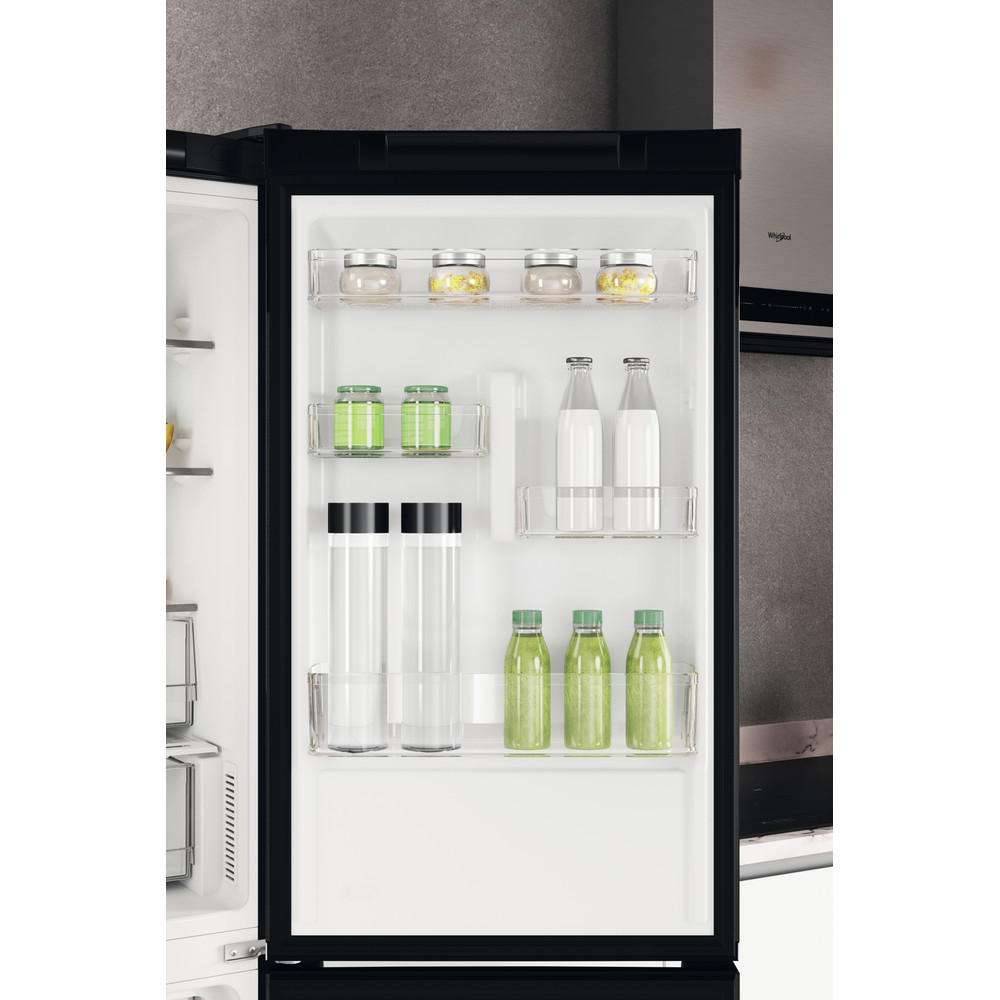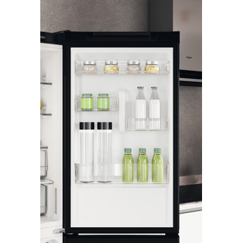 Whirlpool szabadonálló hűtő-fagyasztó jellemzők: fekete szín. No frost, fagymentes technológia, amely hatékonyan megakadályozza a jég felhalmozódását a fagyasztóban a páratartalom csökkentésével. Egy magas készülék, amely megfelel a család igényeinek. Üveg polcok, amelyek biztosítják a robosztusságot és eleganciát egyszerre. 6.Érzék szenzorok, amelyek automatikusan csökkentik a készülék belsejében lévő hőmérsékletet, amikor új élelmiszert tárol benne, csökkentve az energiafogyasztást.