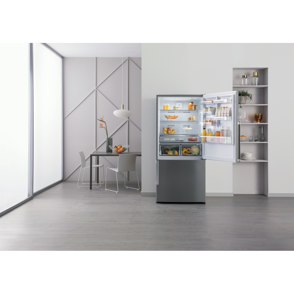 Whirlpool szabadonálló hűtő-fagyasztó jellemzők: inox szín. Inox design No frost, fagymentes technológia, amely hatékonyan megakadályozza a jég felhalmozódását a fagyasztóban a páratartalom csökkentésével. Egy magas készülék, amely megfelel a család igényeinek. Üveg polcok profil fronttal, mely robosztusságot, eleganciát, és extra biztonságot nyújtanak,